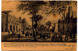 The photo is an old postcard of the square where the Hotel Cuatro Naciones is placed: